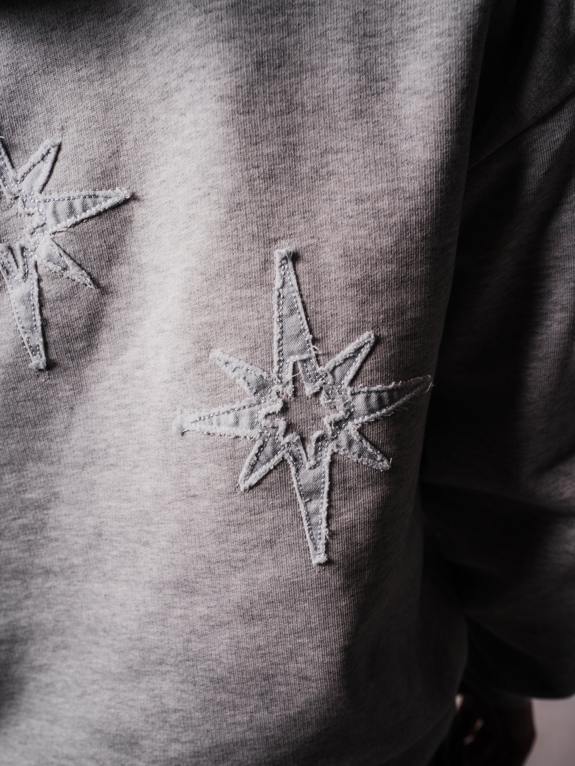 - 3 estrellas traseras: parches bordados con impresión camuflaje blanco y acabado desilachado